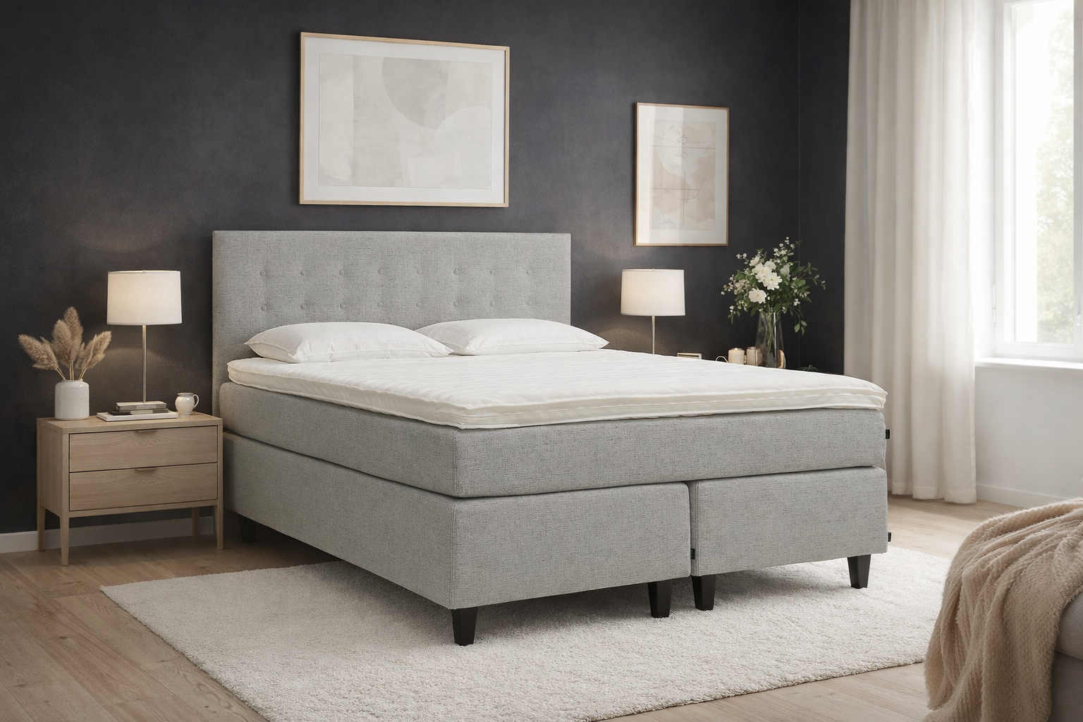 - Voit valita molempiin sängyn puolikkaisiin erikseen jäykkyyden, joten sänky sopii taatusti kahdelle erilaiselle nukkujalle.
